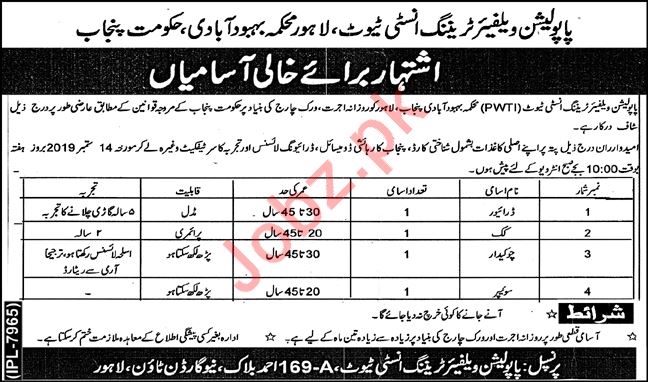 Population Welfare Training Institute Jobs 2019 In Lahore