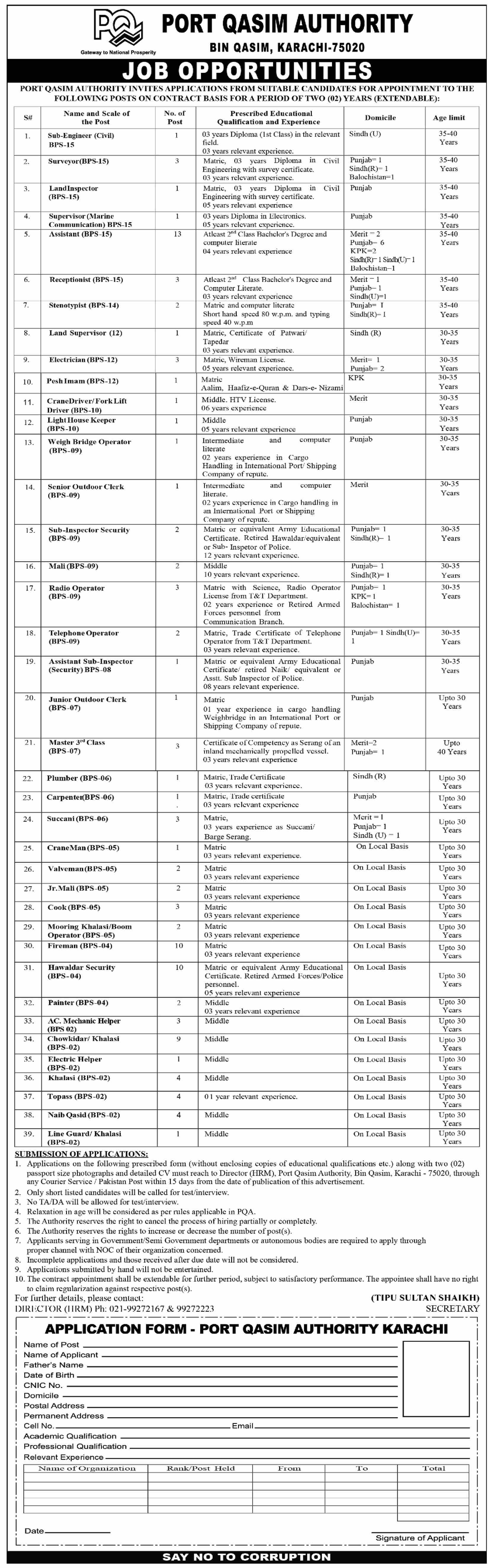 Vacancies in Port Qasim Authority PQA Advertisement June 2022