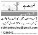 Private Company is looking for candidates for following posts as per job advertisement published in daily Express Newspaper of November 4, 2022 for location Karachi, karachi Sindh Pakistan: