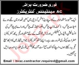 Private Organization jobs advertisement dated about 19 September 2022 in daily The News Newspaper invites application for the vacant post of ac maintenance contractor in Karachi, karachi Sindh Pakistan. Candidates with Matric, Middle and Intermediate etc. educational background will be preferred.
