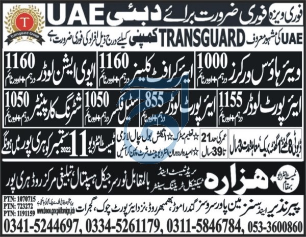 Hazara Trade Test and Technical Training Center Abu Dhabi, dubai UAE invites applications from eligible candidates for the post of shuttering carpenter, warehouse worker, airport loader, aviation loader, aircraft cleaner and steel fixer as per advertisement of September 9, 2022 published in daily Aaj Newspaper. Persons with Middle and Matric etc. education can apply.
