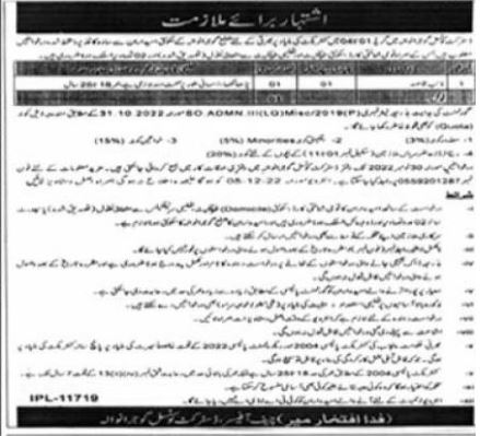 Vacant posts including naib qasid are announced in District Council Gujranwala, gujranwala Punjab Pakistan as per 15 November 2022 advertisement in daily Daily Pakistan Newspaper. Educational qualifications required Middle and Primary etc.