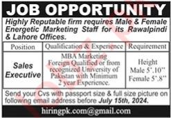 Private Firm invites applications for job positions advertised in daily The News dated 30 June 2024 for following vacancies in Rawalpindi, rawalpindi and lahore Punjab Pakistan.