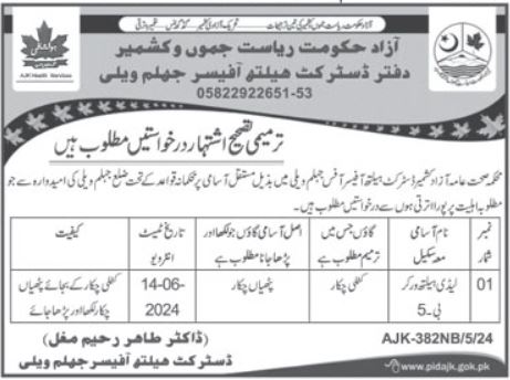 Public Health Department invites applications for job positions advertised in daily Ausaf dated 1 June 2024 for following vacancies in Jhelum Valley, jhelum valley AJK Pakistan.