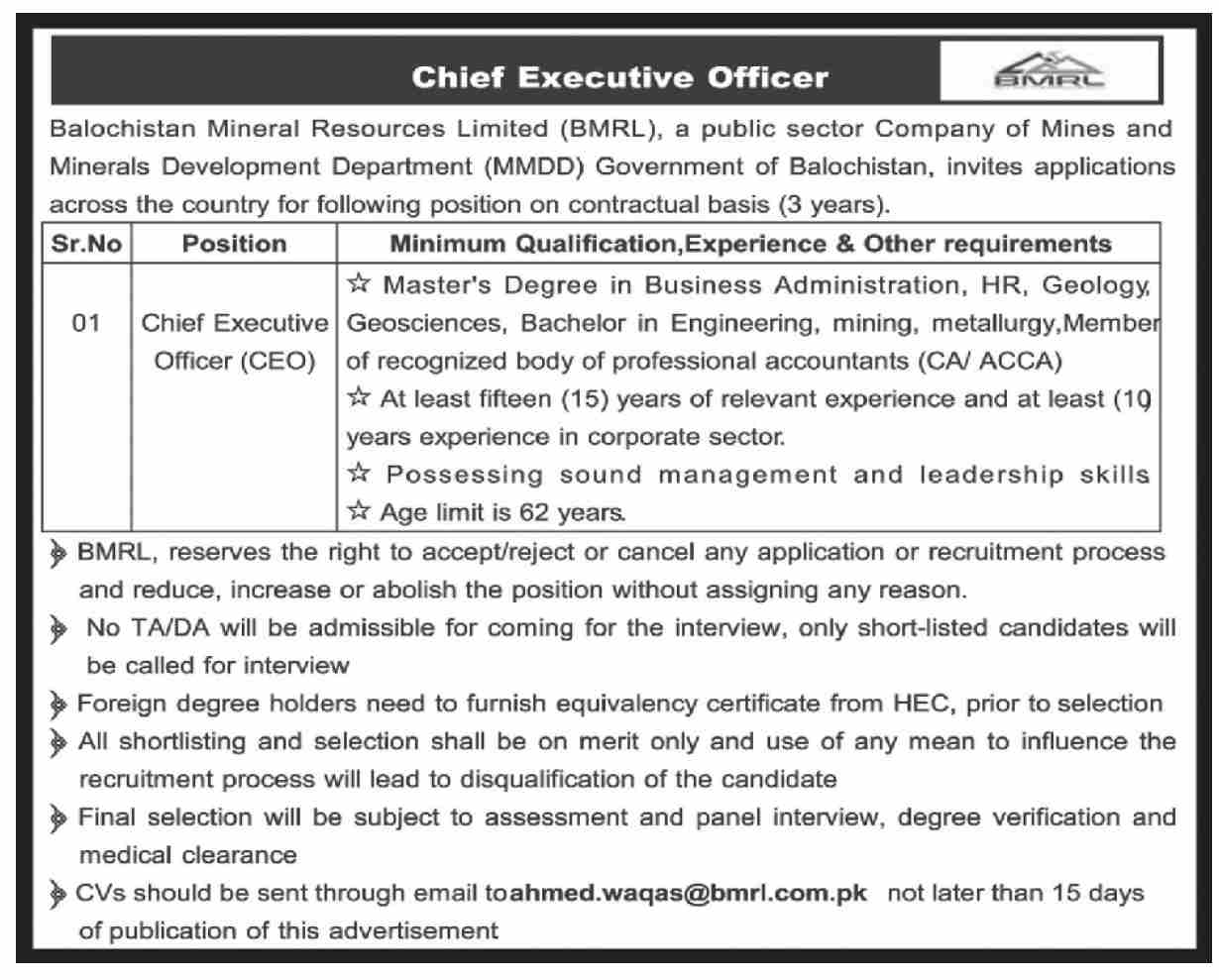 Latest Admin Clerical jobs and others Government jobs in Balochistan Mineral Resources Limited closing date is around November 5, 2022, see exact from ad. Read complete ad online to know how to apply on latest Balochistan Mineral Resources Limited job opportunities.