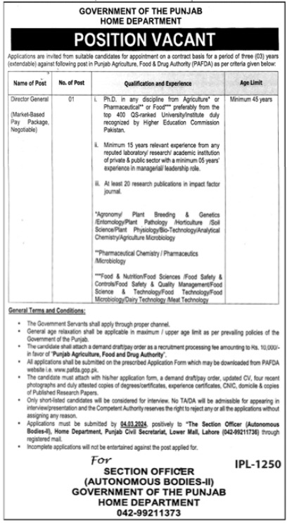 Home Department invites applications for job positions advertised in daily Jang dated 14 February 2024 for following vacancies in Lahore, lahore Punjab Pakistan.