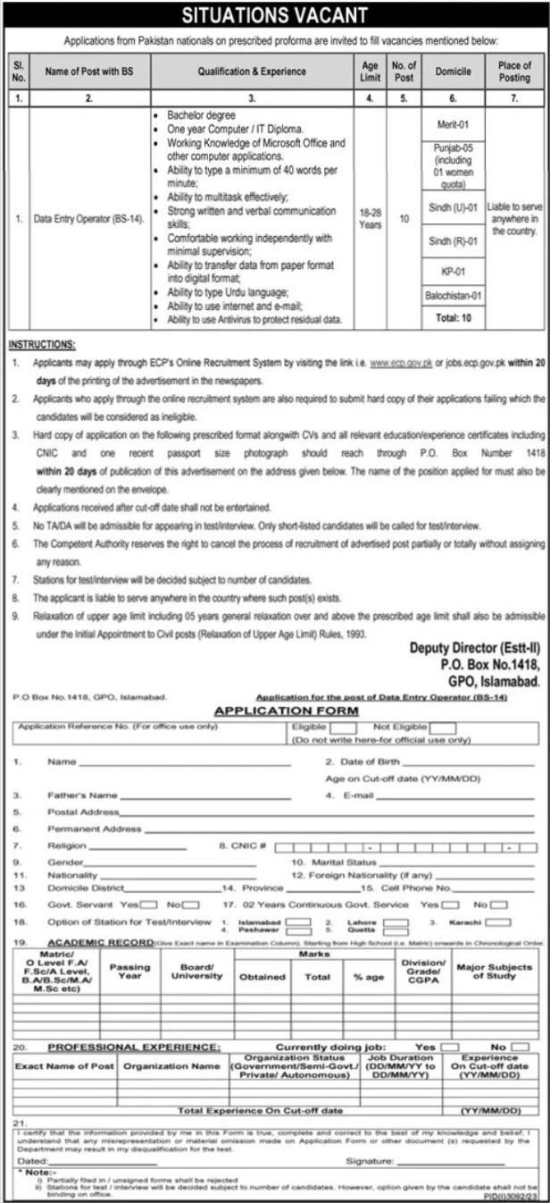 Latest Election Commission of Pakistan ECP Data Entry Posts Islamabad 2025