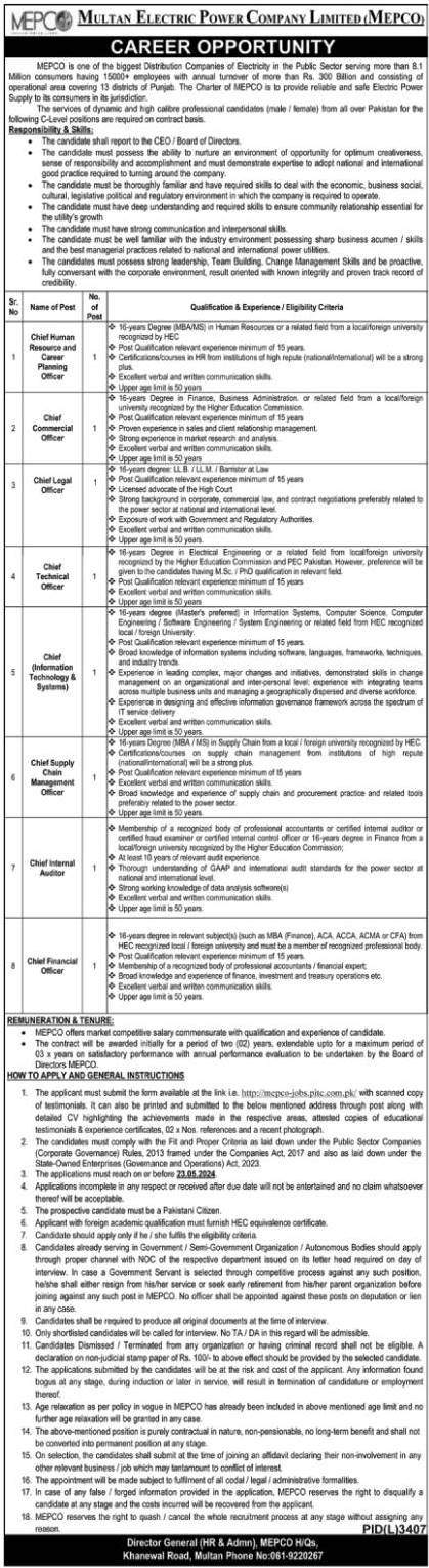 Latest Management jobs and others Government jobs in Multan Electric Power Company MEPCO closing date is around May 23, 2024, see exact from ad. Read complete ad online to know how to apply on latest Multan Electric Power Company MEPCO job opportunities.