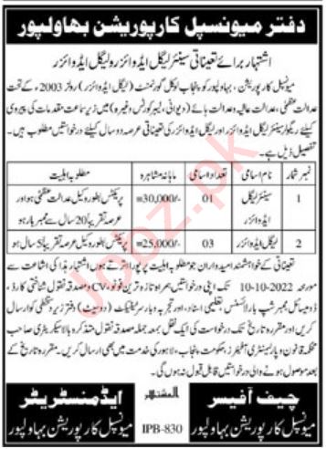 Latest Municipal Corporation Legal Posts Bahawalpur 2025
