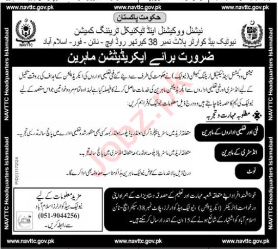 National Vocational & Technical Training Commission NAVTTC Islamabad, islamabad Islamabad Pakistan invites applications from eligible candidates for the post of accreditation expert as per advertisement of August 18, 2024 published in daily Jang Newspaper. Educational qualifications required Master and Bachelor etc.
