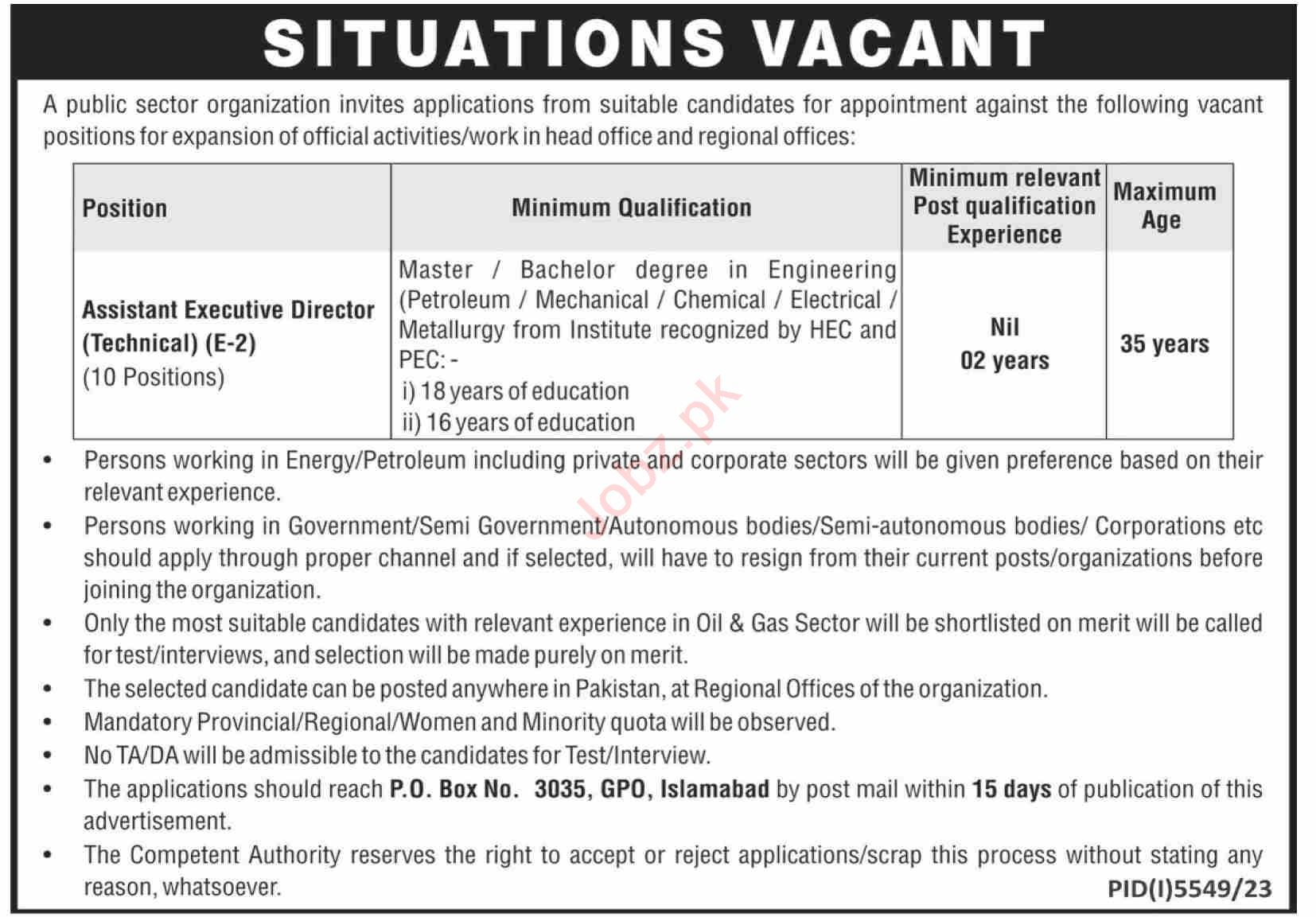 Vacancies in Public Sector Organization Advertisement March 2024