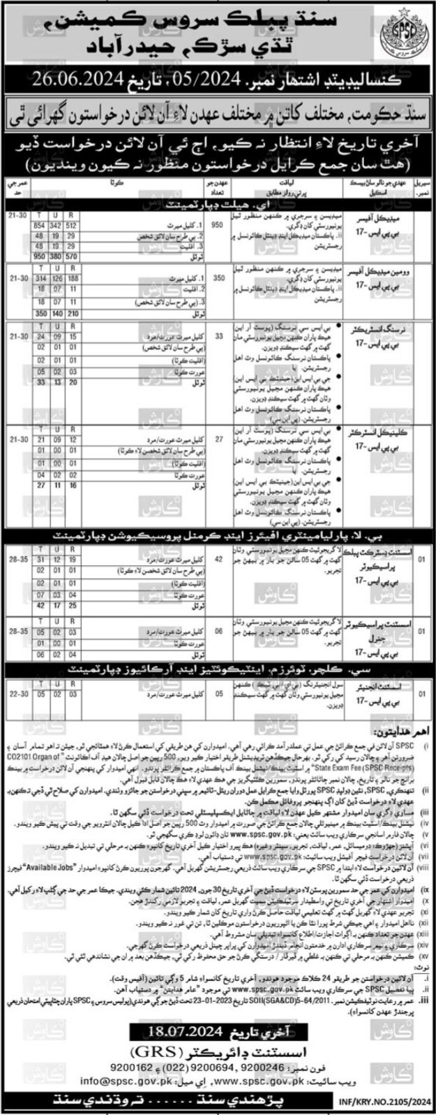 SPSC Sindh Public Service Commission jobs advertisement dated about 2 July 2024 in daily Kawish Newspaper invites application for the vacant post of Assistant District Public Prosecutor, Assistant Engineer, Clinical Instructor, Assistant Prosecutor General, Women Medical Officer, Nursing Instructor and Medical Officer in Hyderabad, hyderabad Sindh Pakistan. Candidates with Master, LLb, MBBS, Bachelor and B.E etc. educational background will be preferred.