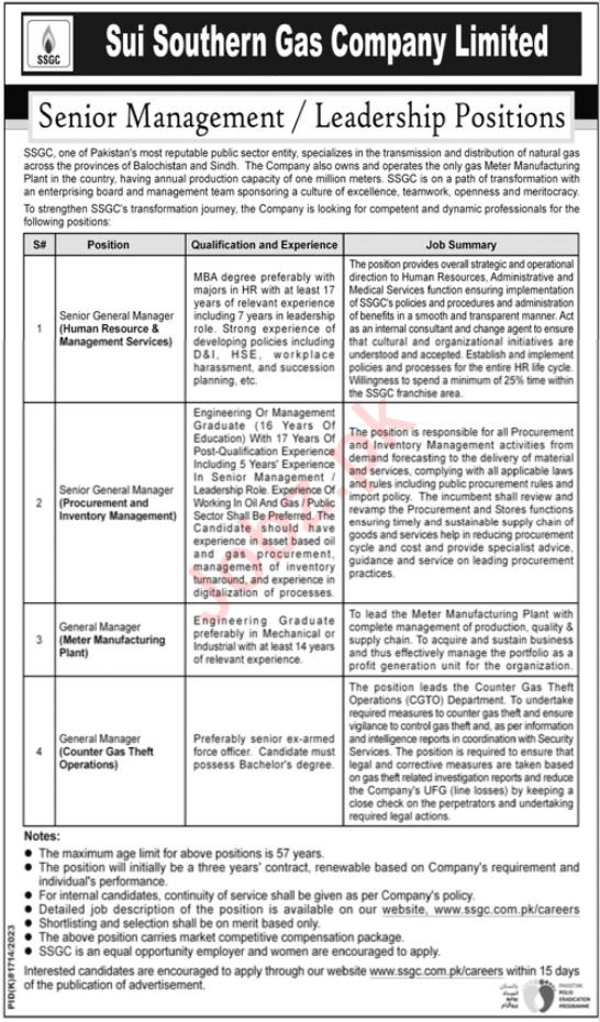Latest Sui Southern Gas Company Limited SSGC Management Posts Karachi 2025