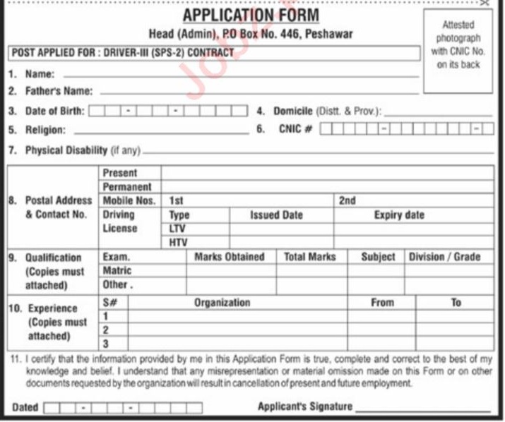 Latest Public Sector Organization Driving Posts Peshawar 2025