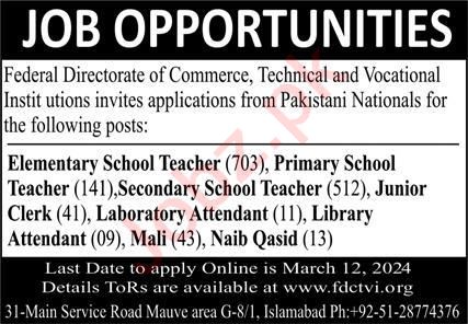 National Vocational & Technical Training Commission NAVTTC jobs advertisement dated about 25 February 2024 in daily Express Newspaper invites application for the vacant post of library attendant, mali, elementary school teacher, clerk, naib qasid, laboratory attendant, primary school teacher and secondary school teacher in Islamabad, islamabad Islamabad Pakistan. Preferred Education is Middle, Bachelor, Master, Primary and Intermediate etc.