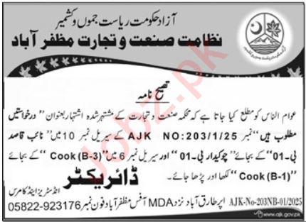 Industries & Commerce Department jobs advertisement dated about 20 January 2025 in daily Khabrain Newspaper invites application for the vacant post of chowkidar and cook in Muzaffarabad, muzaffarabad AJK Pakistan. Persons with Middle and Primary etc. education can apply.