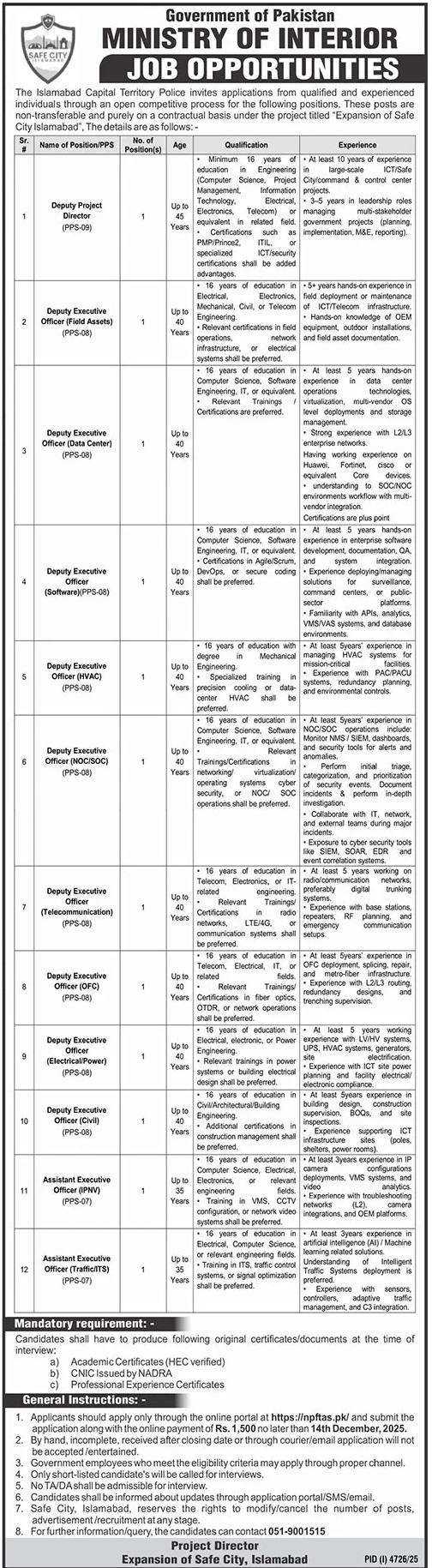 Latest Government jobs in Islamabad Capital Territory Police in Management and others can be applied till 14 December 2025 or as per closing date in newspaper ad. Read complete ad online to know how to apply on latest Islamabad Capital Territory Police job opportunities.