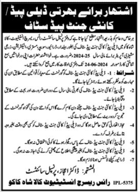 Rice Research Institute Lahore, lahore Punjab Pakistan invites applications from eligible candidates for the post of beldar, sweeper, mistry, driver, electrician and agriculture machinery operator as per advertisement of June 7, 2024 published in daily Jang Newspaper. Educational qualifications required Matric, Primary, Intermediate and Middle etc.