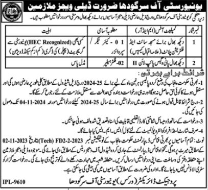 University of Sargodha UOS is looking for candidates for following posts as per job advertisement published in daily Jang Newspaper of October 18, 2024 for location Sargodha, sargodha Punjab Pakistan: