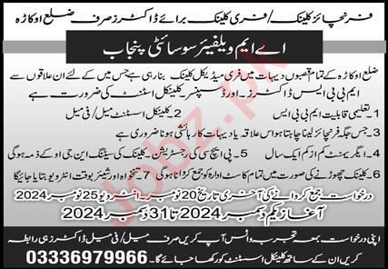 AM Welfare Society is looking for candidates for following posts as per job advertisement published in daily Express Newspaper of November 17, 2024 for location Okara, okara Punjab Pakistan: