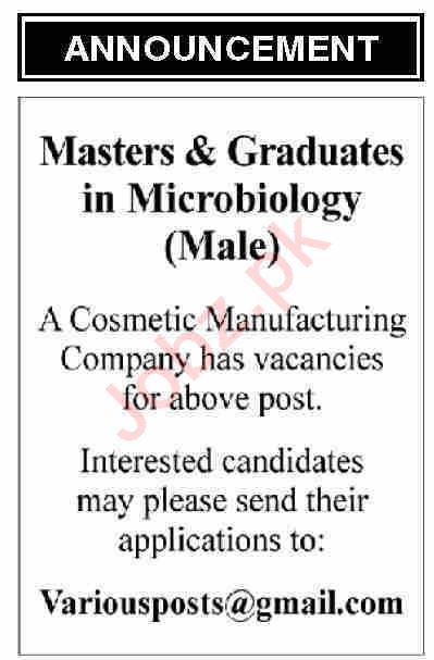 Positions Vacant at Cosmetic Manufacturing Company
