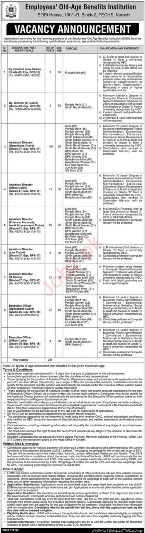 Apply at Employees Old Age Benefits Institution EOBI latest Government jobs in Management and departments before closing date which is around August 5, 2024 or as per closing date in newspaper ad. Read complete ad online to know how to apply on latest Employees Old Age Benefits Institution EOBI job opportunities.