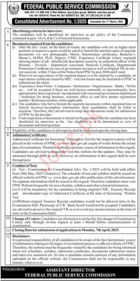 Vacancies in Federal Public Service Commission FPSC Advertisement March 2025