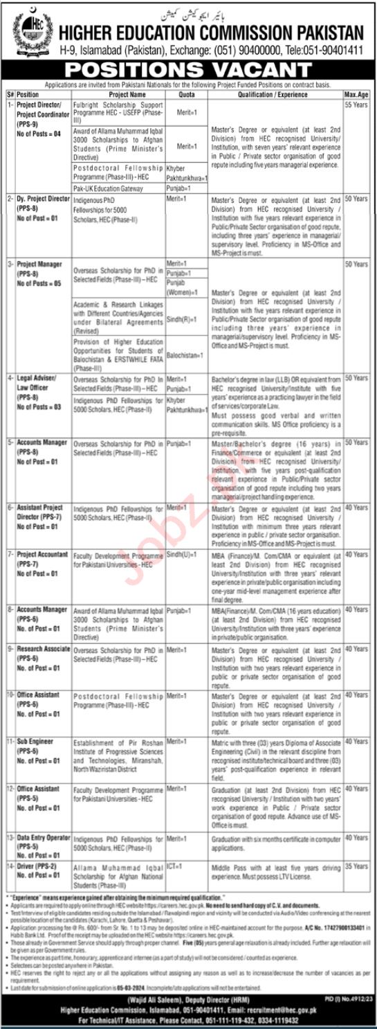 Vacancies in Higher Education Commission HEC Advertisement February 2024