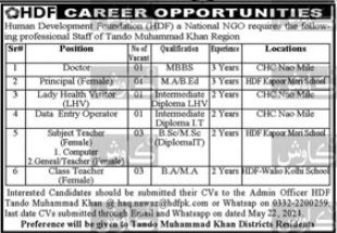 Human Development Foundation invites applications for job positions advertised in daily Kawish dated 17 May 2024 for following vacancies in Tando Muhammad Khan, tando muhammad khan Sindh Pakistan.