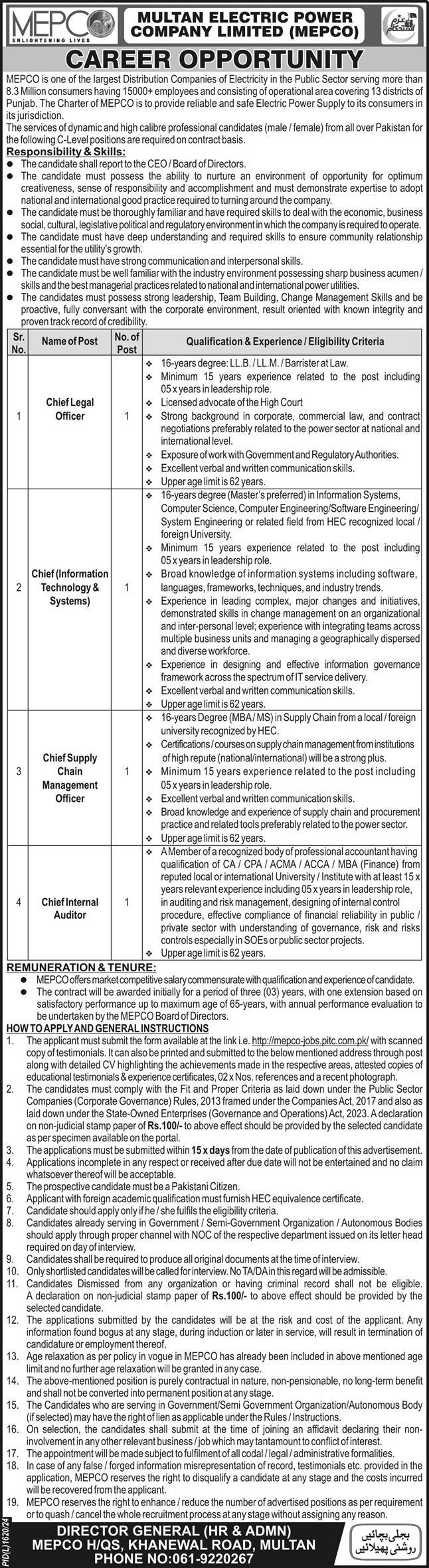 Vacancies in Multan Electric Power Company MEPCO Advertisement December 2024