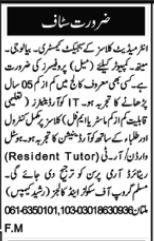 Educational qualifications required Master, Intermediate, Bachelor and Mphil etc.