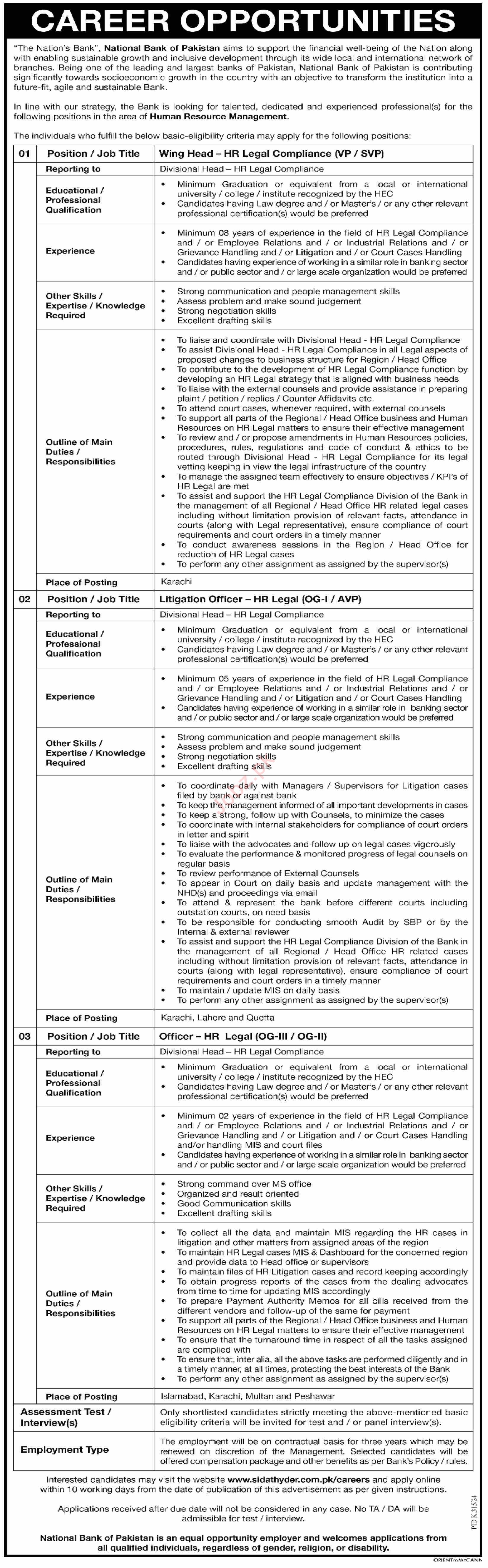 Vacancies in National Bank of Pakistan NBP Advertisement August 2024