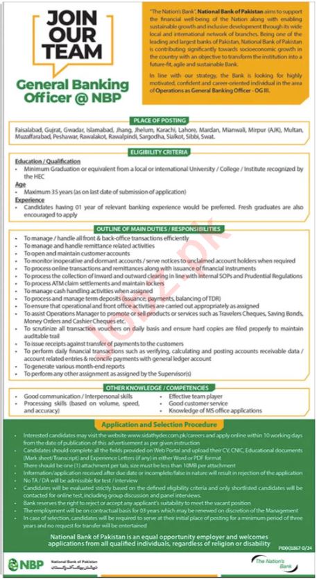 Vacancies in National Bank of Pakistan NBP Advertisement December 2024
