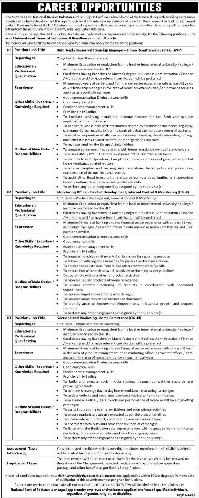 Vacancies in National Bank of Pakistan NBP Advertisement March 2025