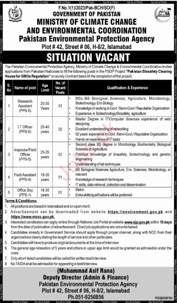 Vacancies in Ministry of Climate Change Advertisement November 2024