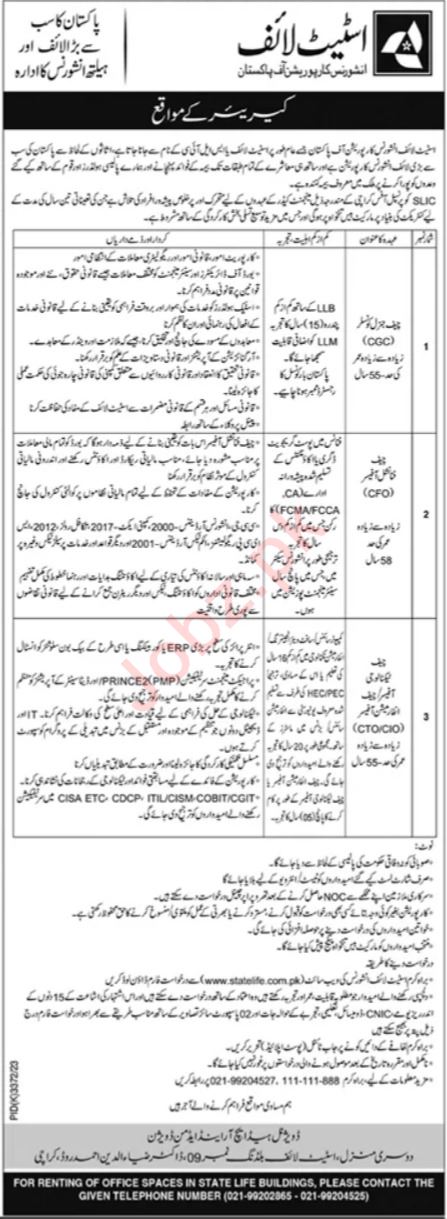 Vacancies in State Life Insurance Corporation of Pakistan Advertisement May 2024