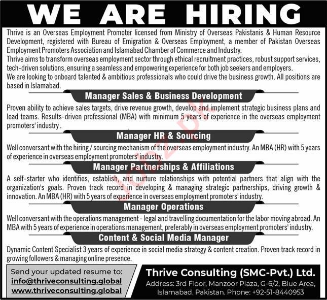 Latest Thrive Consulting Management Posts Islamabad 2025