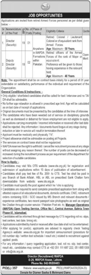 Vacancies in Water and Power Development Authority WAPDA Advertisement August 2024