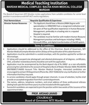 Medical Teaching Institution MTI is looking for candidates for following posts as per job advertisement published in daily The News Newspaper of August 1, 2024 for location Mardan, mardan Khyber Pakhtunkhwa KPK Pakistan: