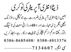 Private Company Lahore, lahore Punjab Pakistan invites applications from eligible candidates for the post of data entry operator as per advertisement of July 3, 2023 published in daily The News Newspaper. Bachelor and Intermediate etc. educational qualification will be preferred.