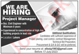 Private Group jobs advertisement dated about 9 July 2023 in daily Jang Newspaper invites application for the vacant post of project manager in Lahore, lahore Punjab Pakistan. Preferred Education is Bachelor, MS and Master etc.