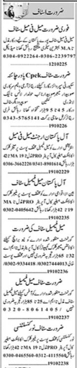 Private Organization is looking for candidates for following posts as per job advertisement published in daily Dunya Newspaper of October 19, 2022 for location Karachi, karachi Sindh Pakistan: