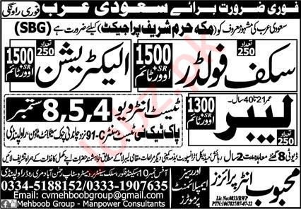 Pak Techni Test Center Riyadh, riyadh Saudi Arabia invites applications from eligible candidates for the post of scaff folder, labor and elctrician as per advertisement of September 4, 2022 published in daily Express Newspaper. Educational qualifications required Middle and Matric etc.