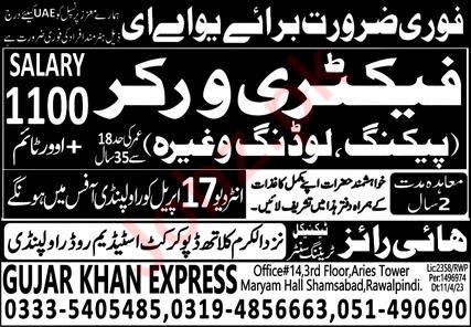 Vacant posts including factory worker are announced in High Rise Technical Training Center Abu Dhabi, abu dhabi UAE as per 16 April 2023 advertisement in daily Express Newspaper. Persons with Middle, Matric and Primary etc. education can apply.