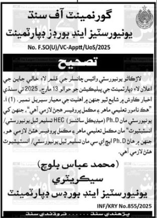Vacancies in Universities & Boards Department Advertisement March 2025