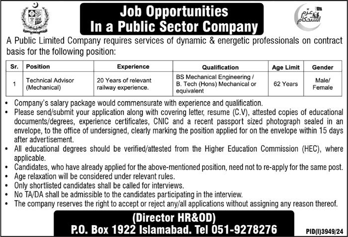 Post Box 1922 Islamabad Jobs 2024 for Technical Advisor