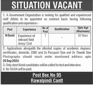 Government Organization is looking for candidates for following posts as per job advertisement published in daily The News Newspaper of September 6, 2024 for location Rawalpindi, rawalpindi Punjab Pakistan:
