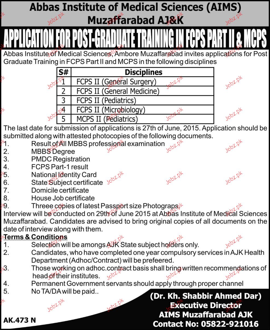Postgraduate Trainees Job In Abbasi Institute Of Medical