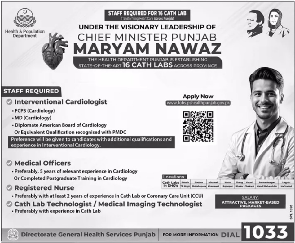 Health & Population Department invites applications for job positions advertised in daily Dunya dated 29 July 2025 for following vacancies in Lahore, lahore Punjab Pakistan.
