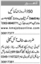 Private Organization Lahore, lahore Punjab Pakistan invites applications from eligible candidates for the post of data entry, clerk and security supervisor as per advertisement of May 30, 2022 published in daily Nawaiwaqt Newspaper. Master, Intermediate and Bachelor etc. educational qualification will be preferred.